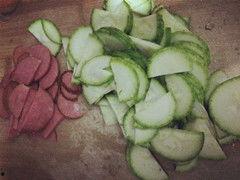 4. 加入角瓜片,翻炒均勻。